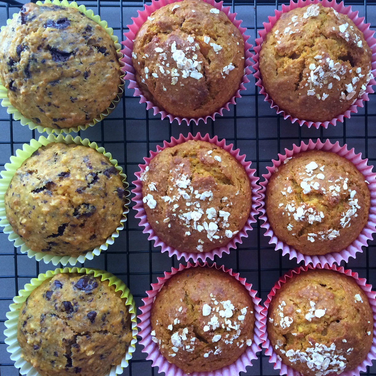 We got a gigantic box of fruit and veggies delivered a week ago which has resulted in us trying to be creative and use as much of it as we can. A poor humungous piece of pumpkin has been sitting in the crisper for an entire week so I thought I had better do something with him. I have mashed together a few different muffin recipes to create this beauty below – enjoy!